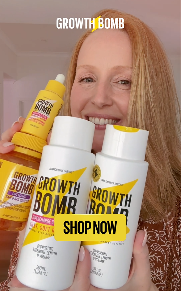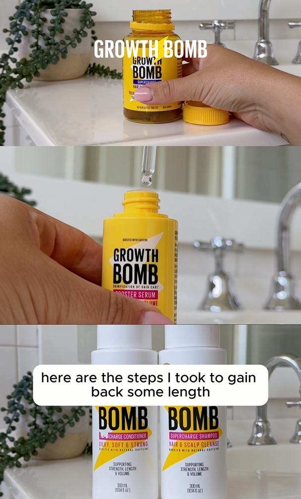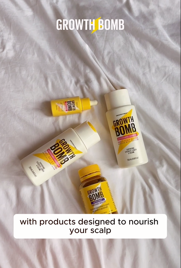 Accelerate your hair growth journey with Growth Bomb's Growth Support Bundle, designed to help you regrow from a haircut, and achieve longer, faster-growing hair.